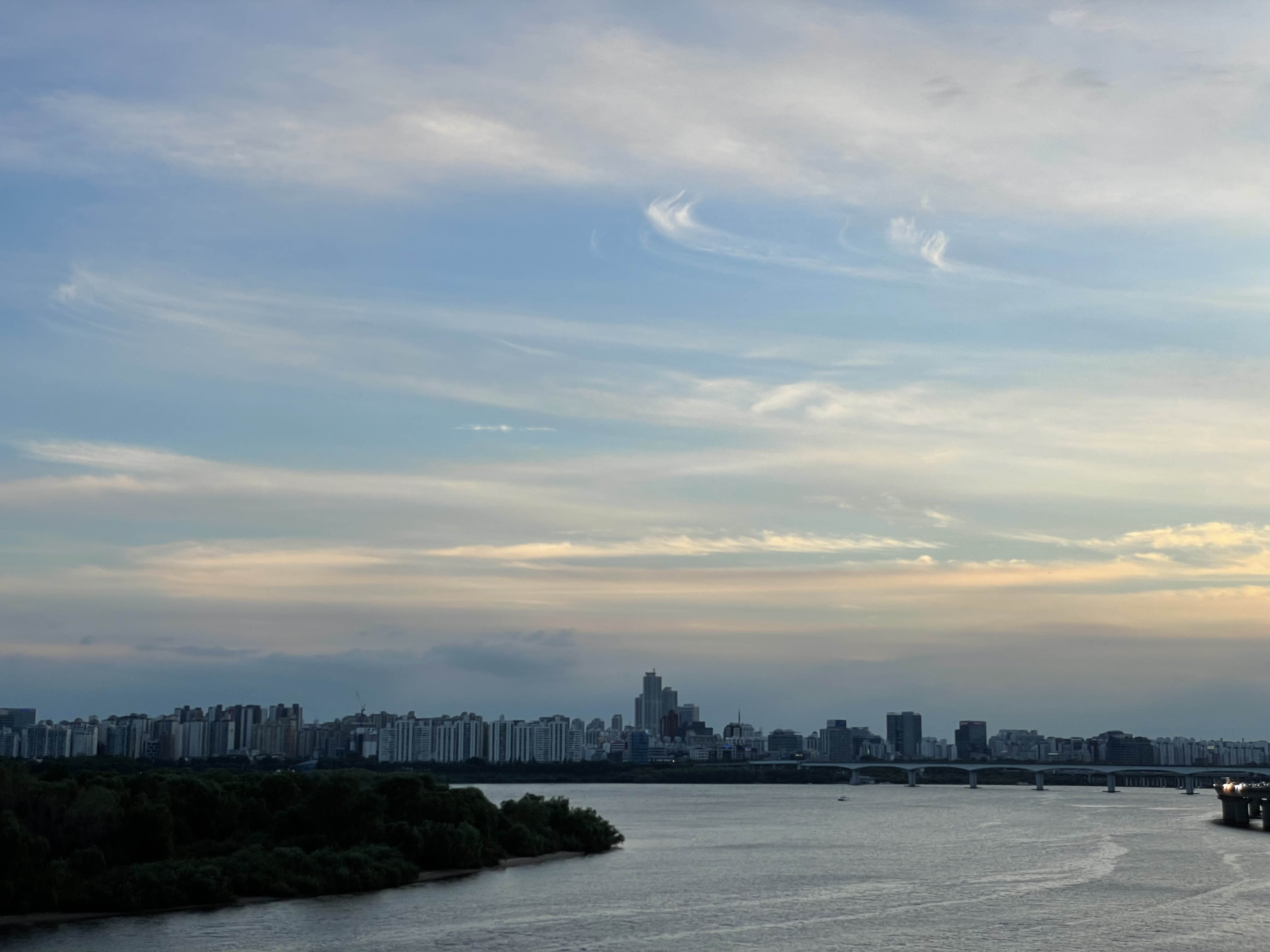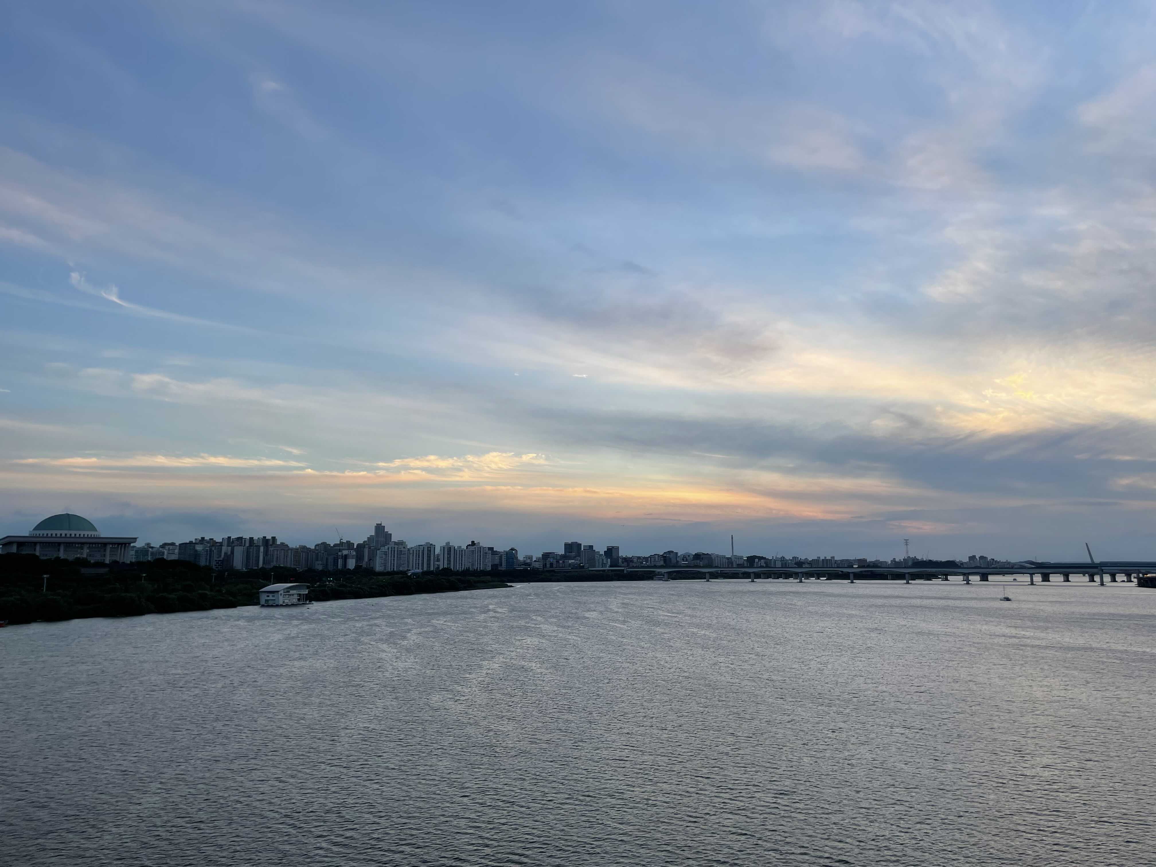 중간에 보이는 섬이다. 친구가 이거 개발하면 집값 대박이겠다고 했다. 모기도 대박일듯. 평소에 한강만 보이면 맨날 한강뷰 집 이야기를 한다.
