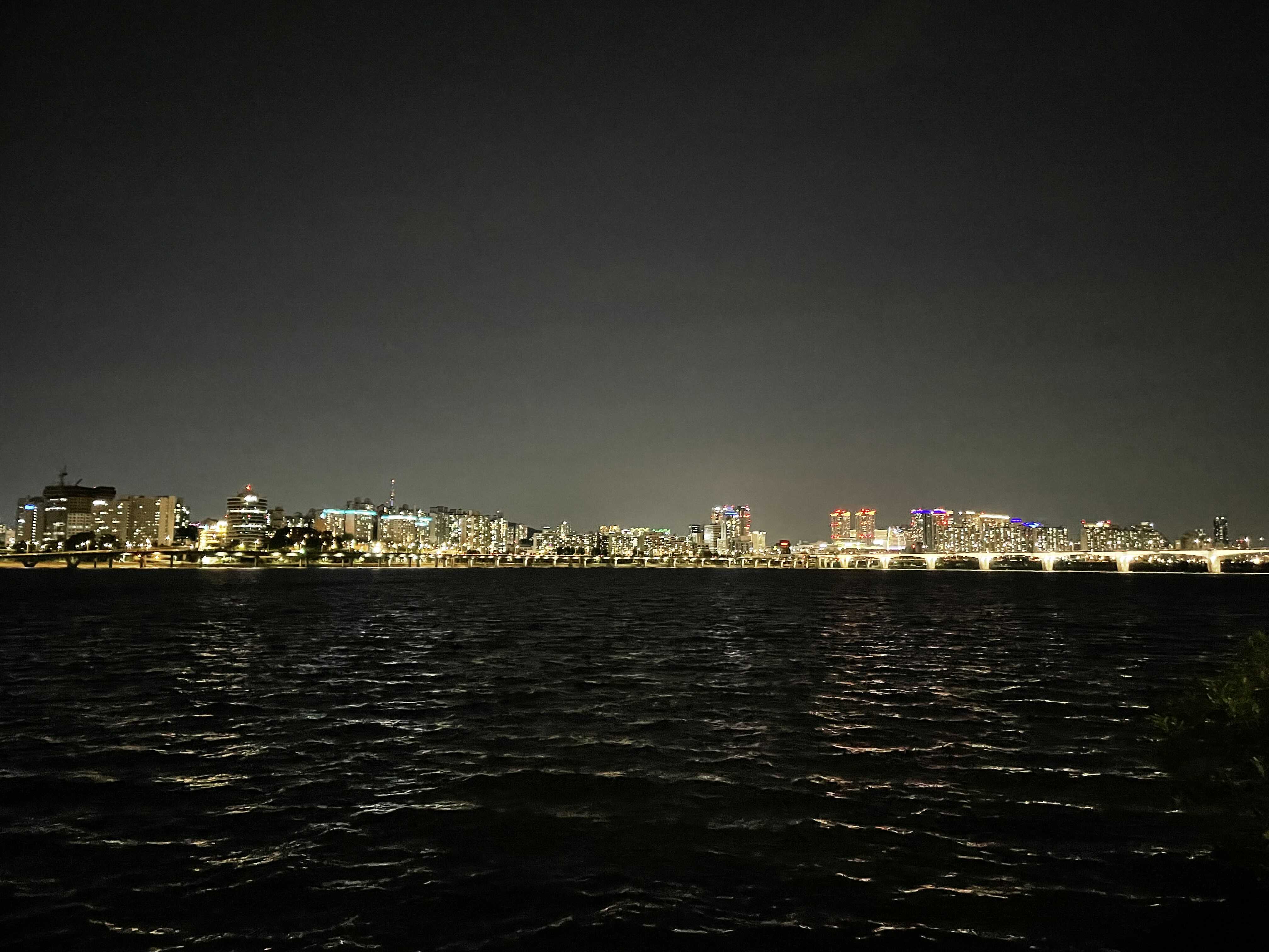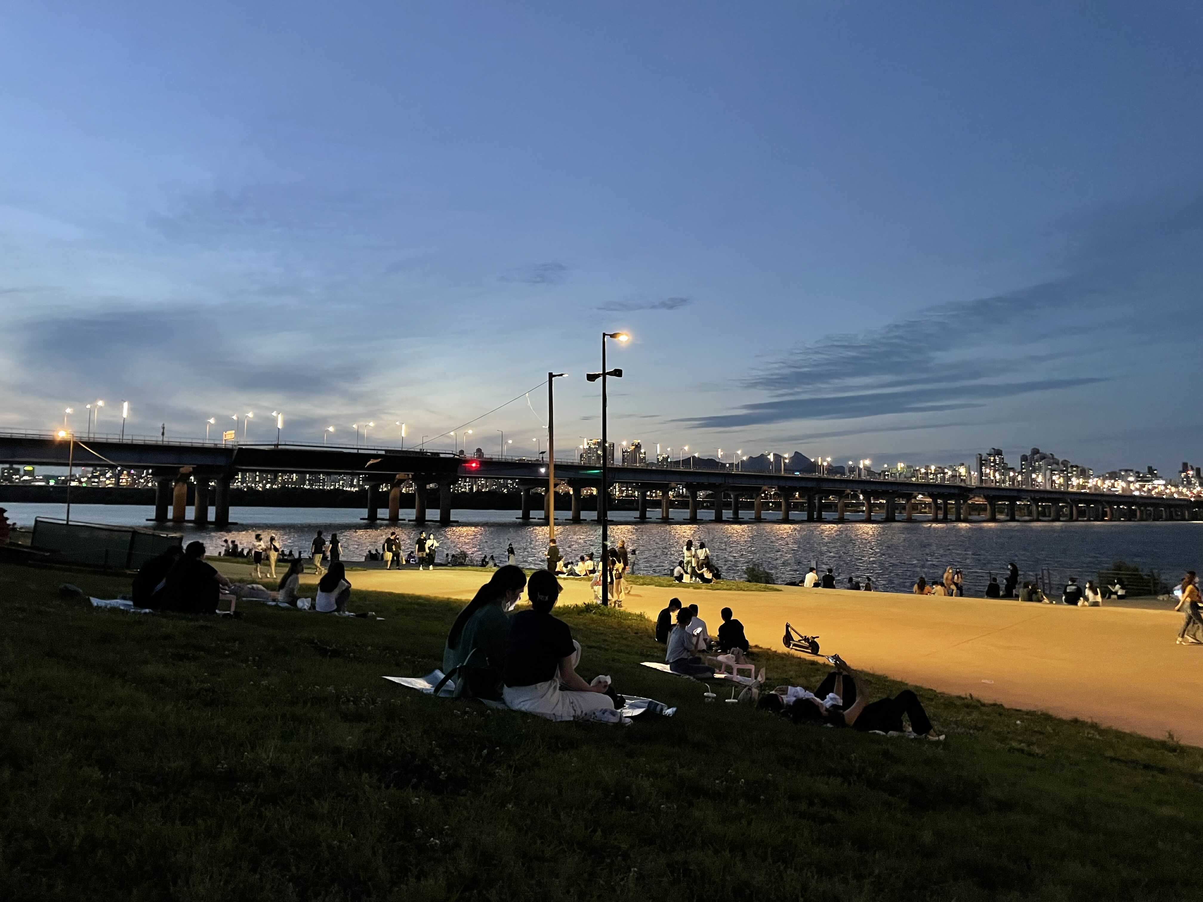 바람이 불어서 에어컨 틀어놓은 것 보다 시원했다. 이런 저런 얘기도 하고, 노래도 듣고 하니 어느새 해가 완전히 내려가고 야경타임 스타트.